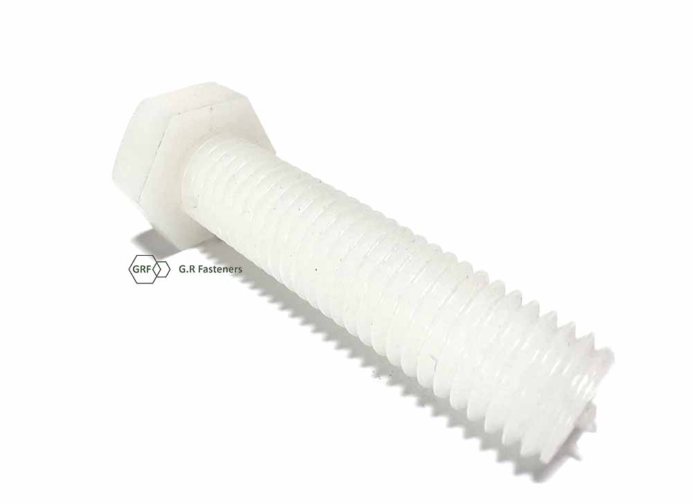 Hex head Set screws are commonly called Fully threaded Bolts or Full thread Bolts, as they are Fully threaded from under the head and have no shank. Nylon can be used in many applications including plumbing and electrical trades. Nylon Hex head Set screws are lightweight and unlike Steel Bolts won't rust when they get wet.